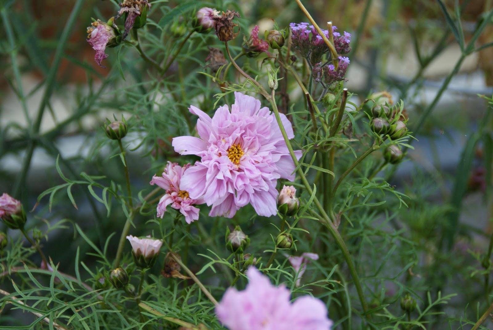 Dobbelt cosmos har jeg i to krukker.